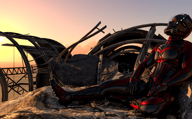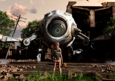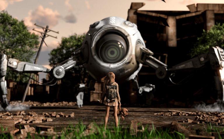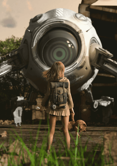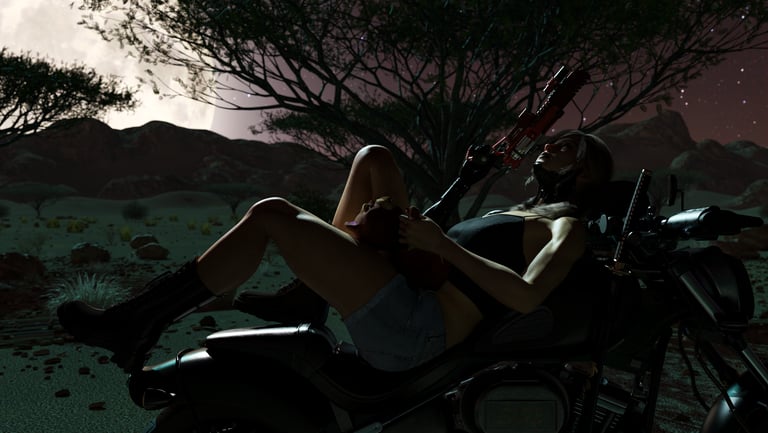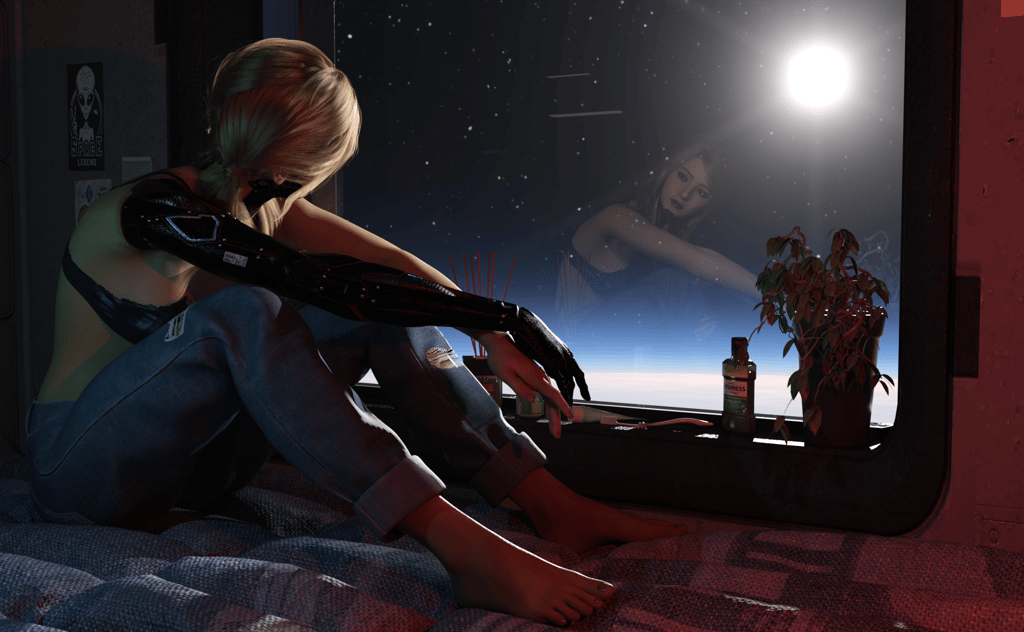 From defiant sci-fi worlds to moments of quiet intimacy, each render is constructed in 3D and shaped in post-production.